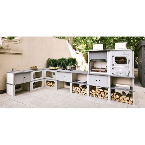 Программа St. Vincent специально разработана для садового расположения. Выполнена из совместимых модулей. Не требует укладочных и штукатурных работ. Легко разбирается и дополняется новыми модулями. Сделана из материалов, устойчивых к погодным изменениям. Духовка и раковина из нержавейки премиум-класса. Модуль гриль с топочной камерой из бетона и решеткой из нержавеющей стали 60х40 см.