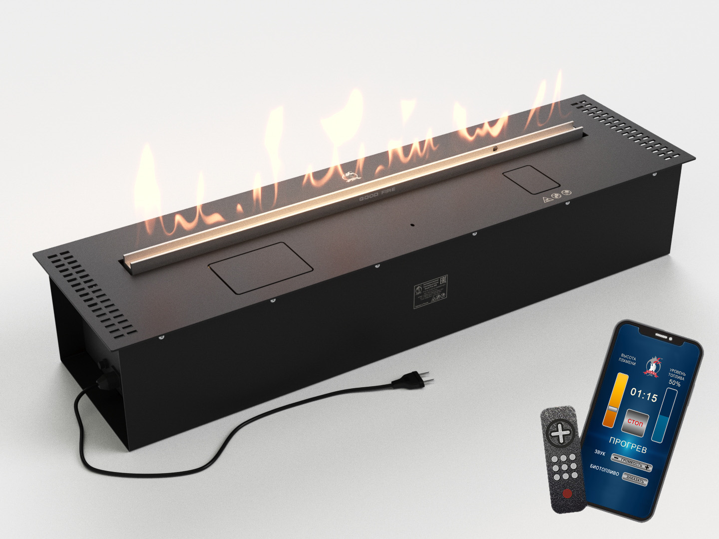 Управление моделью 1000 RC Black осуществляется с помощью интерактивного дисплея / пультом дистанционного управления или смартфоном (через Bluetooth соединение, а не WiFi как было в предыдущей версии камина, что позволяет иметь более надежное соединение не привязаное к работе роутера).