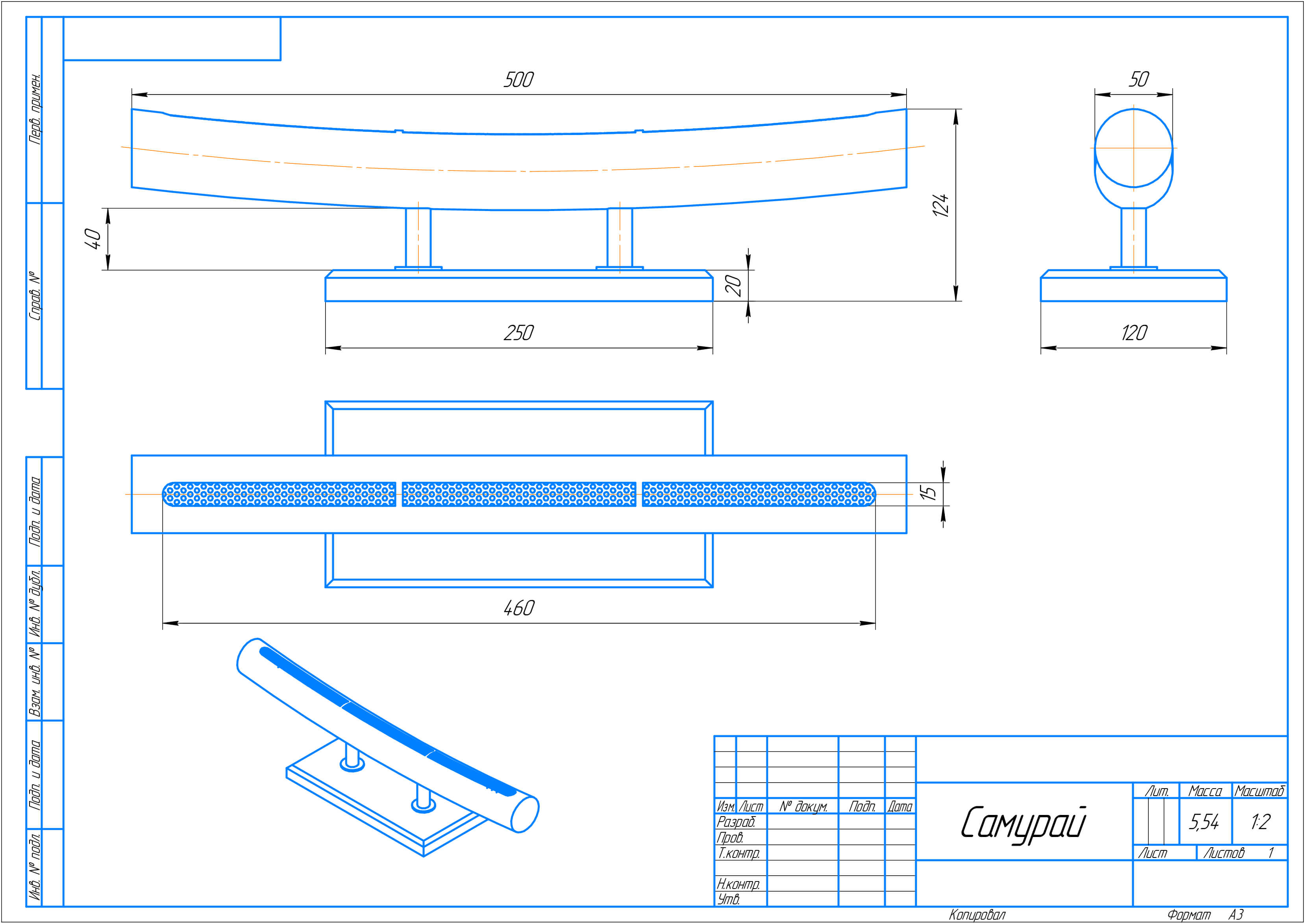- Габаритные размеры ШxГxВ, (мм): 500x120x124