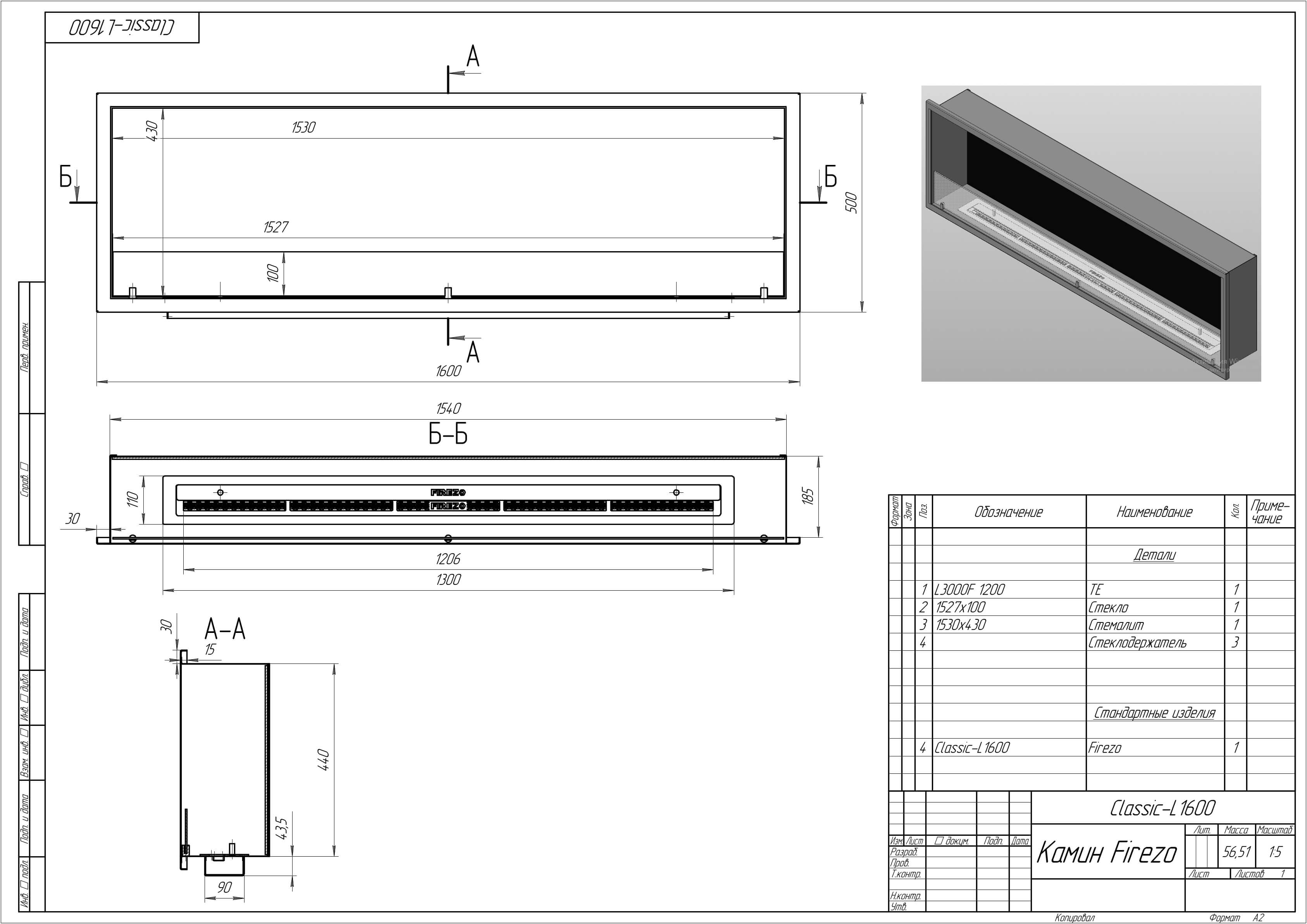 Встраиваемый биокамин Firezo Classic 1600 Стекло+Стемалит