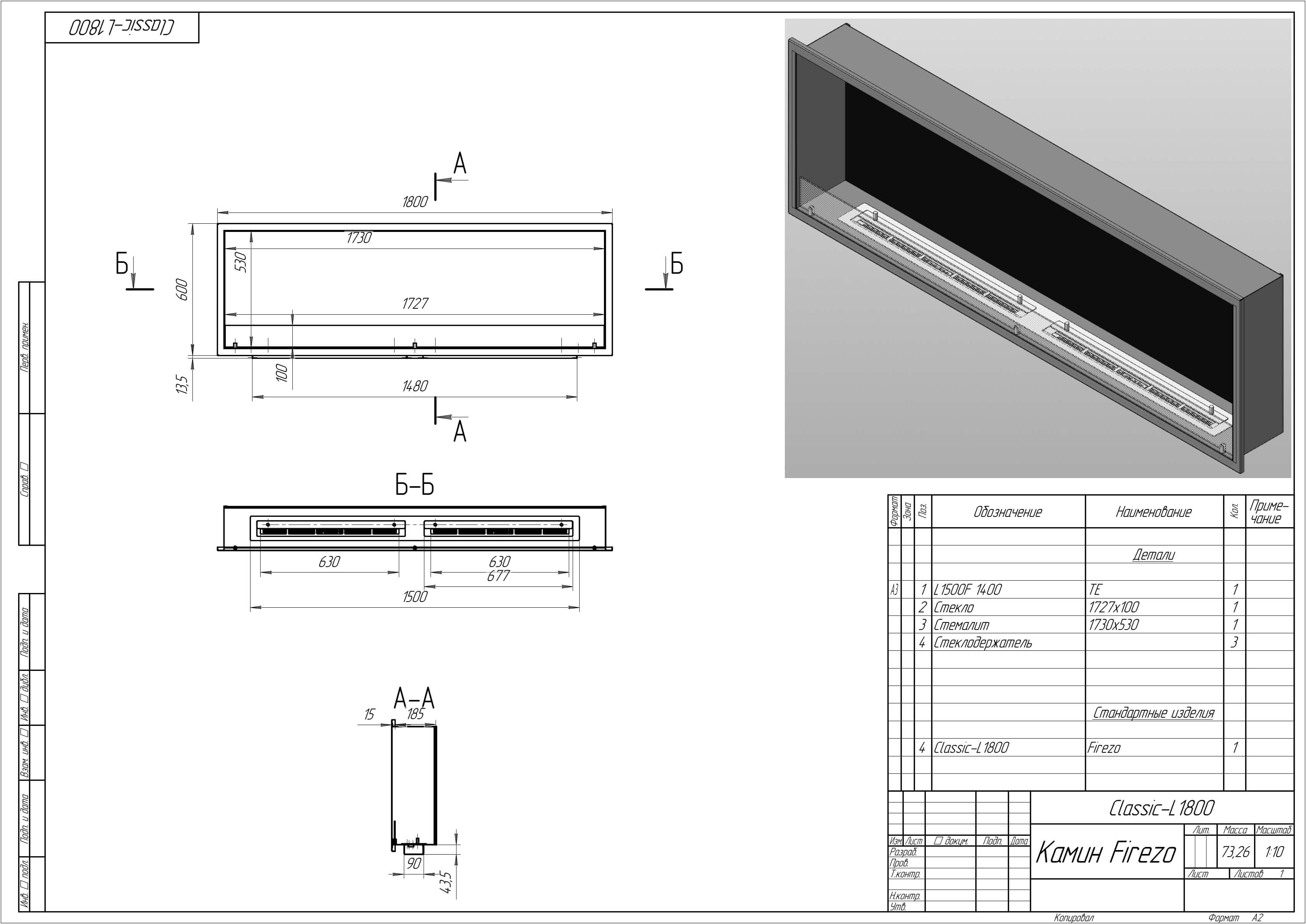 Биокамин Firezo Classic 1800 имеет длину 1800 мм, но может быть изготовлен на заказ по вашим индивидуальным размерам. Линия огня имеет прямоугольную форму. Сварная конструкция очага гарантирует монолитность биокамина и исключает любые возможные проблемы, которые могут возникнуть в результате деформации резьбовых соединений под воздействием тепла после длительного использования.