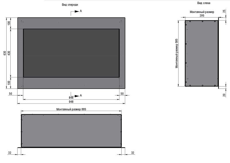 Встраиваемый очаг BioKer/DP design Стандарт 948х300х630 мм