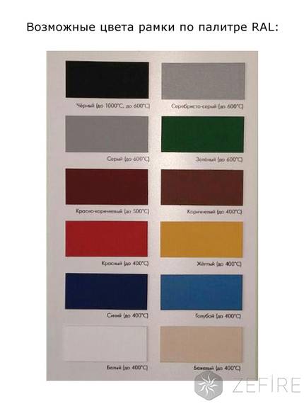 - Конструкция изготовлена из прочной стали и покрыта термостойкой краской. Ее цвет по умолчанию – черный, но можно выбрать любой по RAL-карте.