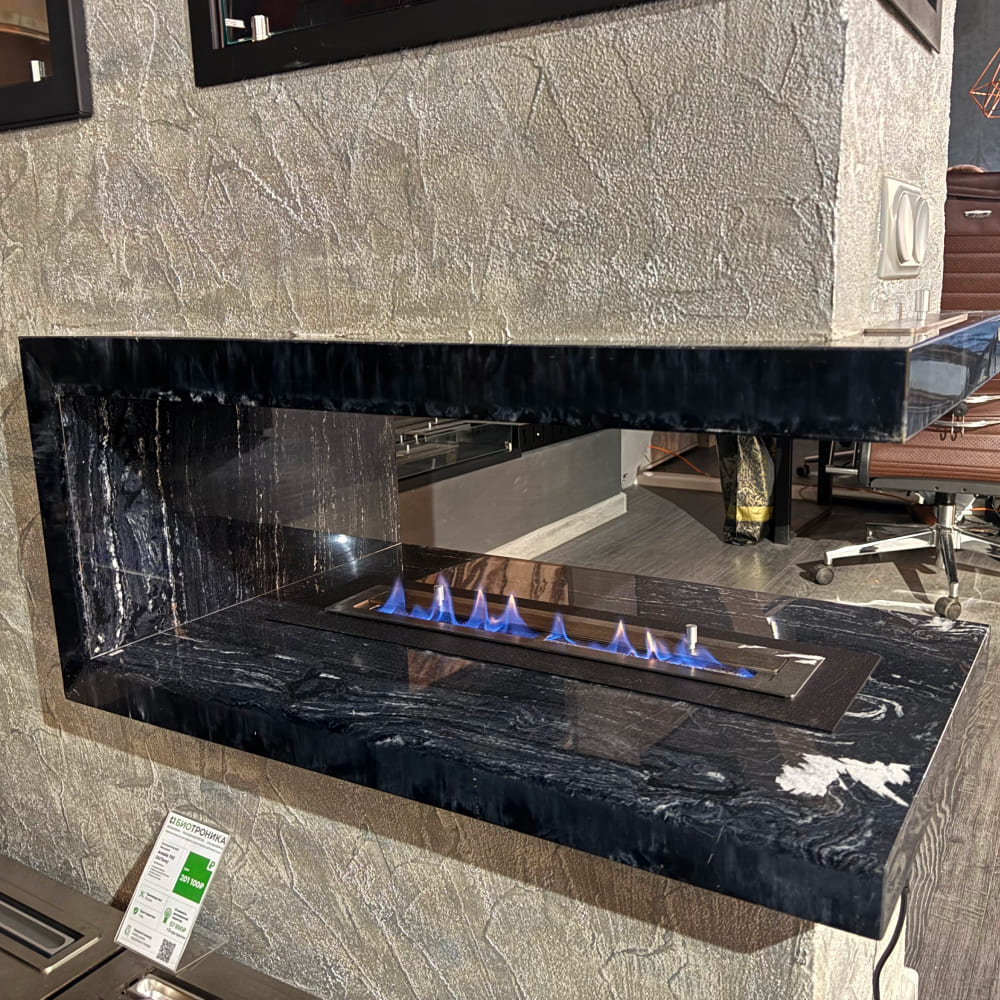Встраиваемый торцевой сквозной биокамин Firezo Estremita Finestra Marmo.