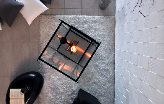 Нижняя часть биокамина остается холодной и может быть дополнена предметами интерьера, в том числе подвесными; на самом деле, можно легко снять отдельные опорные стекла, чтобы поставить украшение, растение или чтобы было удобнее очищать стекла.