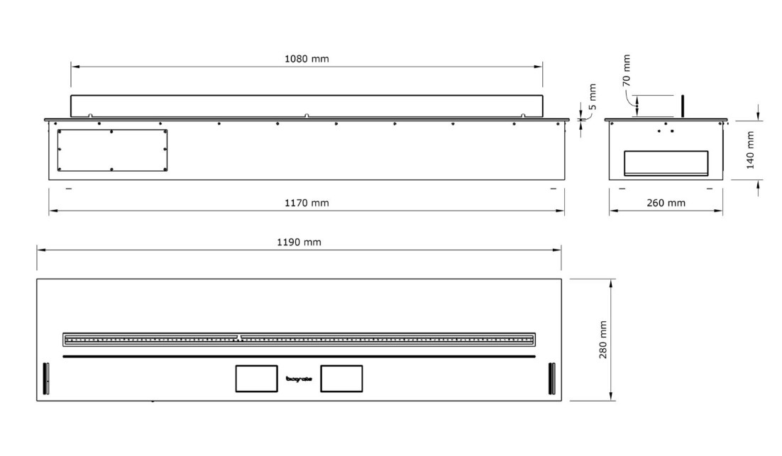 - Габаритные размеры ШxГxВ, (мм): 1190х140х280