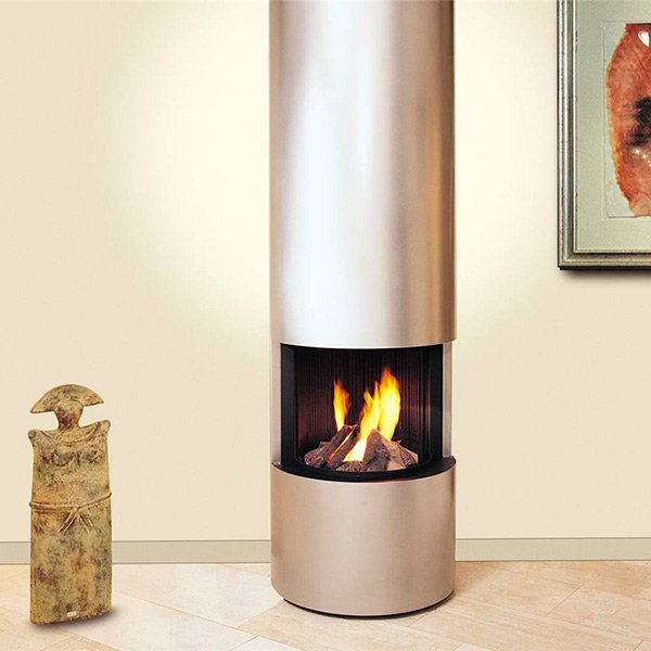 - Камин работает на газовом топливе, но вы сможете выбрать именно для этого камина дровяной вид отопления. Имеет круглую топку открытого характера. Такой вариант декоративного оформления топки абсолютно безопасен.