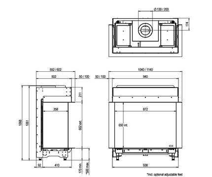 - Диаметр дымохода, (мм) 200