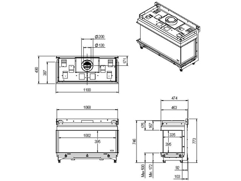 В камине реализована технология закрытого горения, при которой кислород в помещении не выжигается. Достигается это за счет абсолютной герметичности камеры и использования дымохода особой конструкции, имеющего двойной контур. По внешнему контуру воздух подается в топку с улицы, а по внутреннему – из топки удаляются продукты сгорания. Причем осуществляется все это за счет естественной тяги.