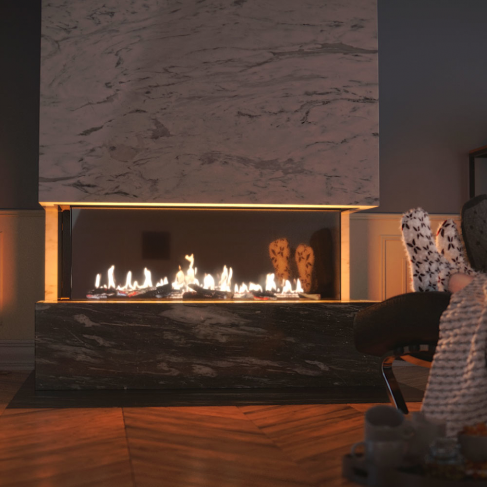 • Беспрепятственное созерцание огня благодаря невидимой рамке фасада и минимальному количеству видимых стальных элементов.