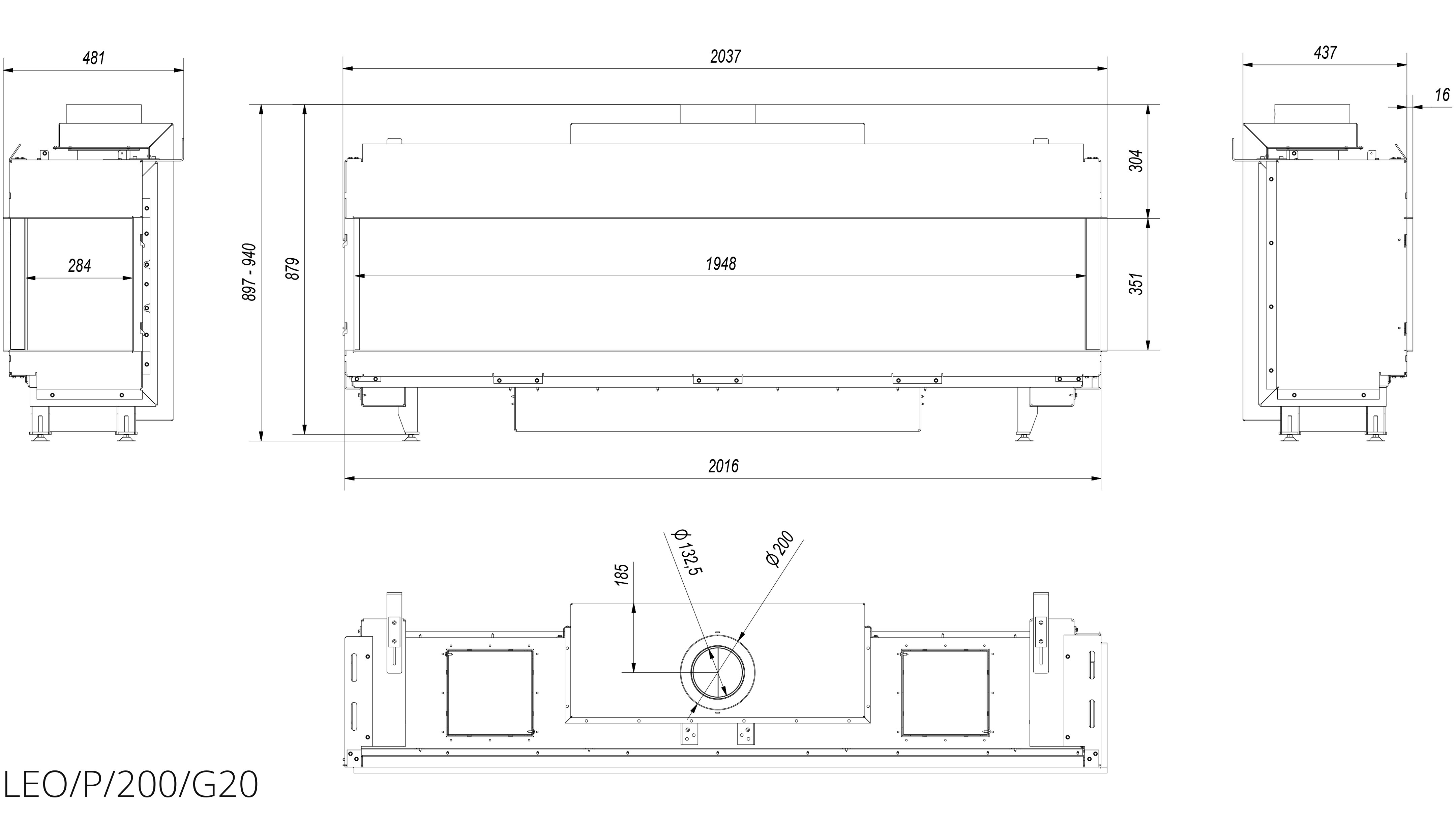 Газовый камин Kratki LEO/P/200/G20 правая магистральный газ