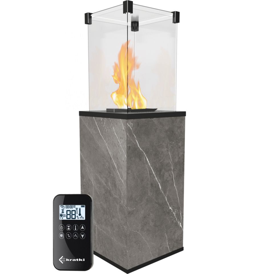 Газовый камин Kratki Patio/G31/37MBAR/Q/N/P/G Naturali Pietra Grey керамогранит пульт ДУ