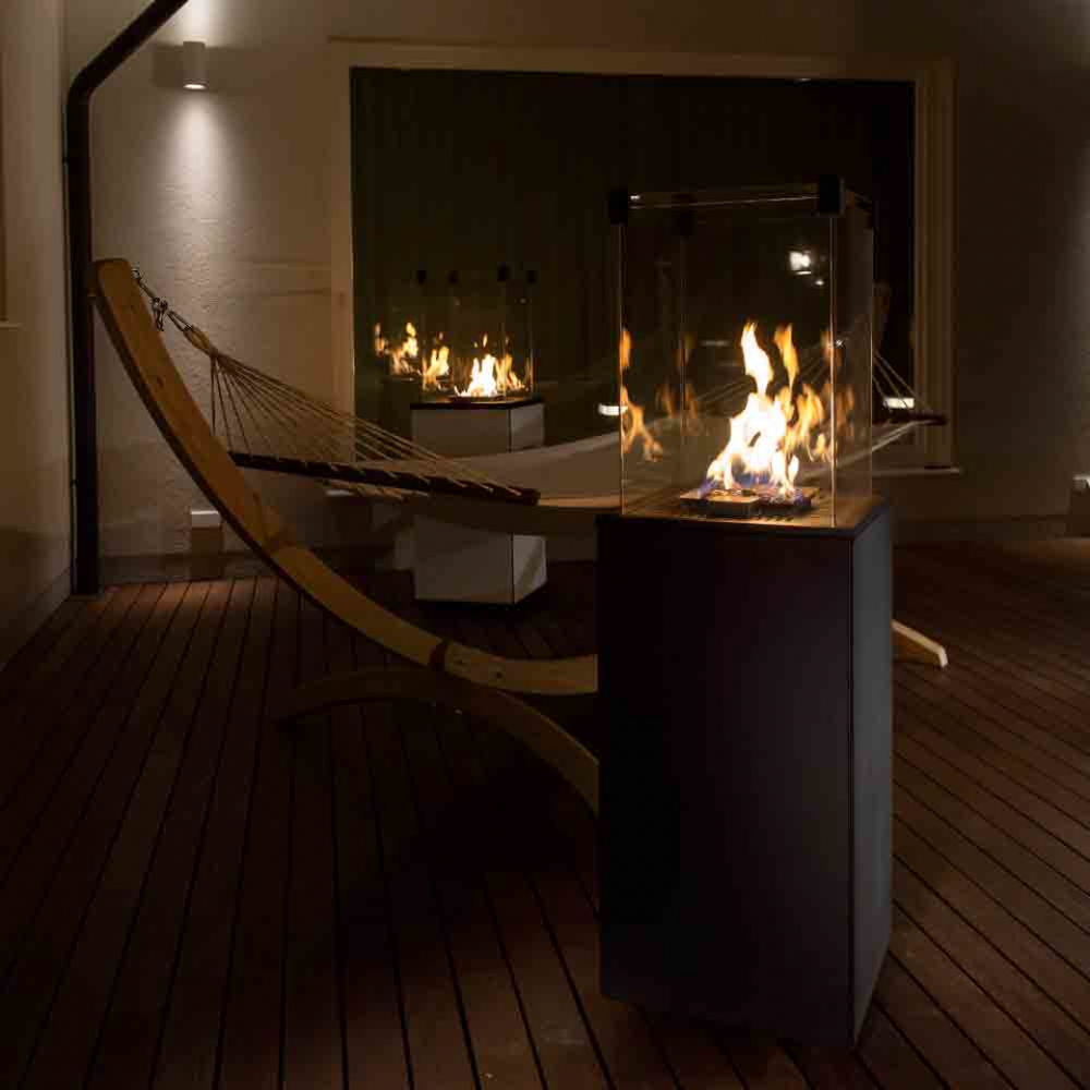 • Современный вид подходит практически везде. Обогреватель может быть элегантным оформлением на домашней террасе или в саду. Его также можно использовать в ресторанном и гостиничном хозяйстве как интересное дополнение к столовой и зоне отдыха. Огонь, видимый с четырех сторон.