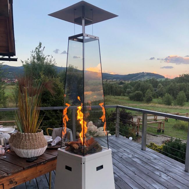 • Конструкция обогревателя необычно элегантная и интересна декорацией, что привлекает к себе внимание. Привлекательный вид и приятное тепло, которое несется, притягивают в сады и террасы домов и ресторанов полно гостей как в весенние или летние, так и в осенние вечера.