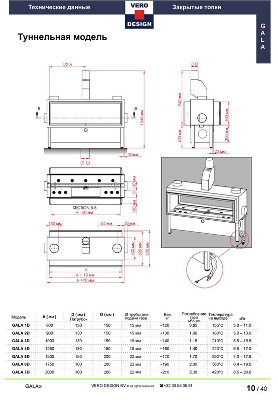 Газовый камин Vero Design Gala GA 1D – туннельная (сквозная) модель с горизонтальными окнами из стекла с двух противоположных сторон. Топка работает от природного газа бутан или баллонного газа пропан, что позволяет устанавливать камин не только в загородном доме, но и в городской квартире. Выражает актуальные на сегодняшний день веяния в создании интерьеров в стиле хай-тек.