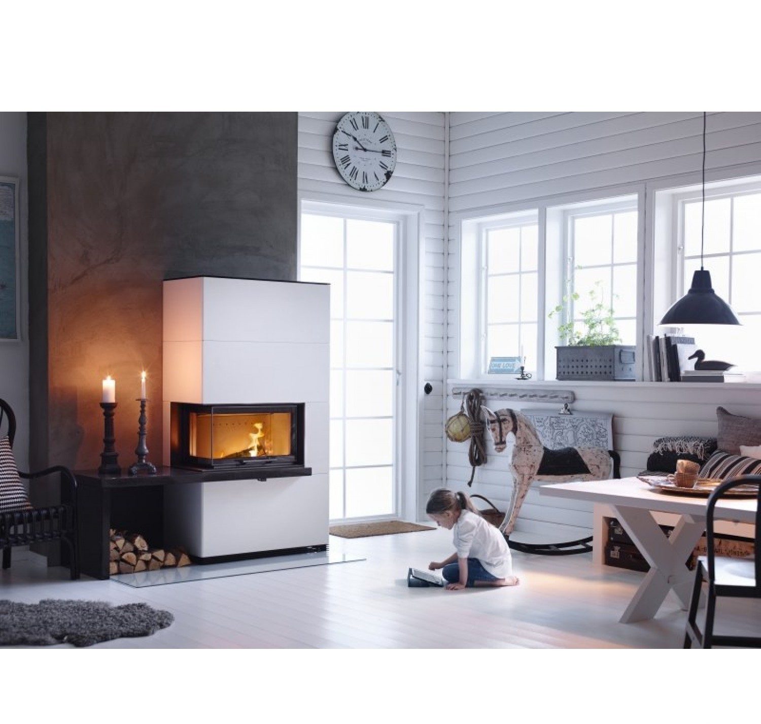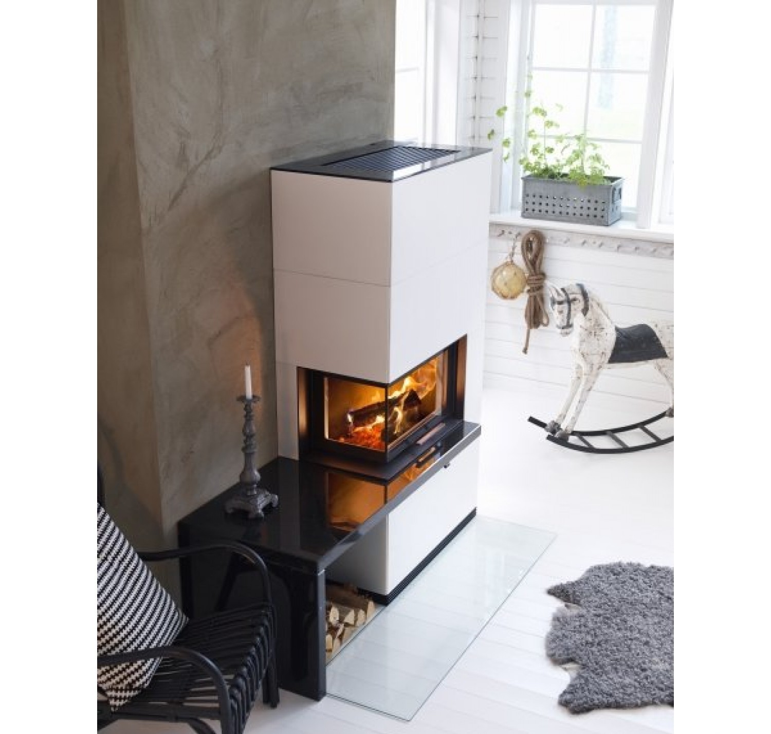 Модель камина Contura i41А из Артстоуна, оснащена угловой дверцей, которая при открытии поднимается вверх и влево или вправо ,в зависимости от ваших пожеланий. Отделка камина из белого искусственного камня Артстоун. Камин можно дополнить скамьей с местом для хранения дров или декоративными деталями из черного гранита. Большая стеклянная дверца создает ощущение открытого огня. Благодаря системе "чистое горение" дверца всегда остается чистой, и вы можете любоваться огнем не думая о загрязнении камина или дымохода копотью и сажей. Использование современных технологий, обеспечивающих хорошее горение, позволяет получить больше тепла.