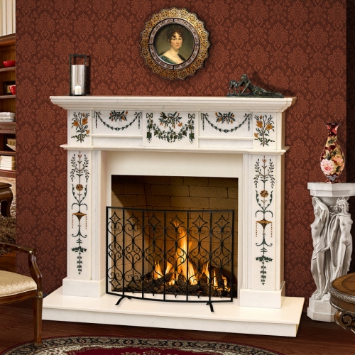 -  Производитель:ArteveroСтрана изготовления:ИталияСтиль:КлассическиеРасположение: ПорталыСрок гарантии:1 годПортал из натурального мрамора Carrara Light.С высокохудожественной инкрустацией ручной работы из натуральных пород мрамора.Размеры основания: 163x131x35 см.Максимальные внутренние размеры под топку: 91х91 см.