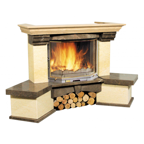 Изящную каминную облицовку Bella Italia Capri отличает лаконичная геометрия портала, исполняемого в пристенном и угловом вариантах. Основание и пилоны выполнены из патинированного мрамора оттенка слоновой кости. В оформлении декоративных элементов и горизонтального подиума, расположенного под топкой, используется полированный мраморный камень Olive Brown. Традиционная каминная полка, венчающая конструкцию, сделана из светлых пород древесины. Классический дизайн портала с элементами кантри-стиля естественно впишется в интерьер и станет главной «изюминкой» помещения.
