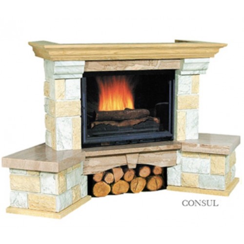 Колоритная каминная облицовка Bella Italia Consul олицетворяет оригинальный творческий поход польских дизайнеров, умело воплощающих классические очертания, оптимальную геометрию и эффектную цветовую палитру. В оформлении облицовки задействованы два вида колотого мрамора белоснежного и солнечного оттенков. На контрасте смотрятся деревянная балка, исполняющая роль каминной полки, и декоративные элементы, изготовленные из двух сортов высококачественного полированного мрамора. Пляшущие язычки живого пламени, облаченные в столь праздничную облицовку, идеально впишутся в интерьер квартиры или частного дома.