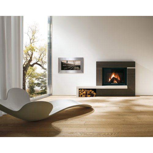 Каминная облицовка Palazzetti Soho выполнена в венге кварцит с банкеткой и вставкой из белого полированного мрамора. Расположения банкетки правое или левое.