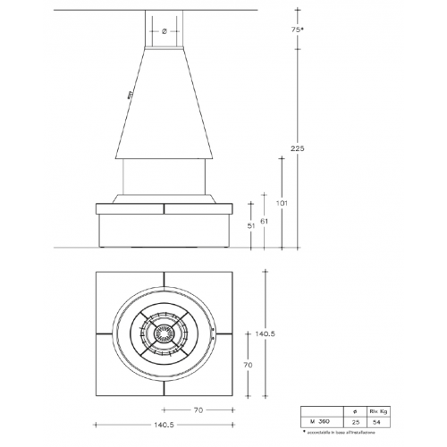 Камин совместим с топками M360 T (цилиндрический или конический кожух).