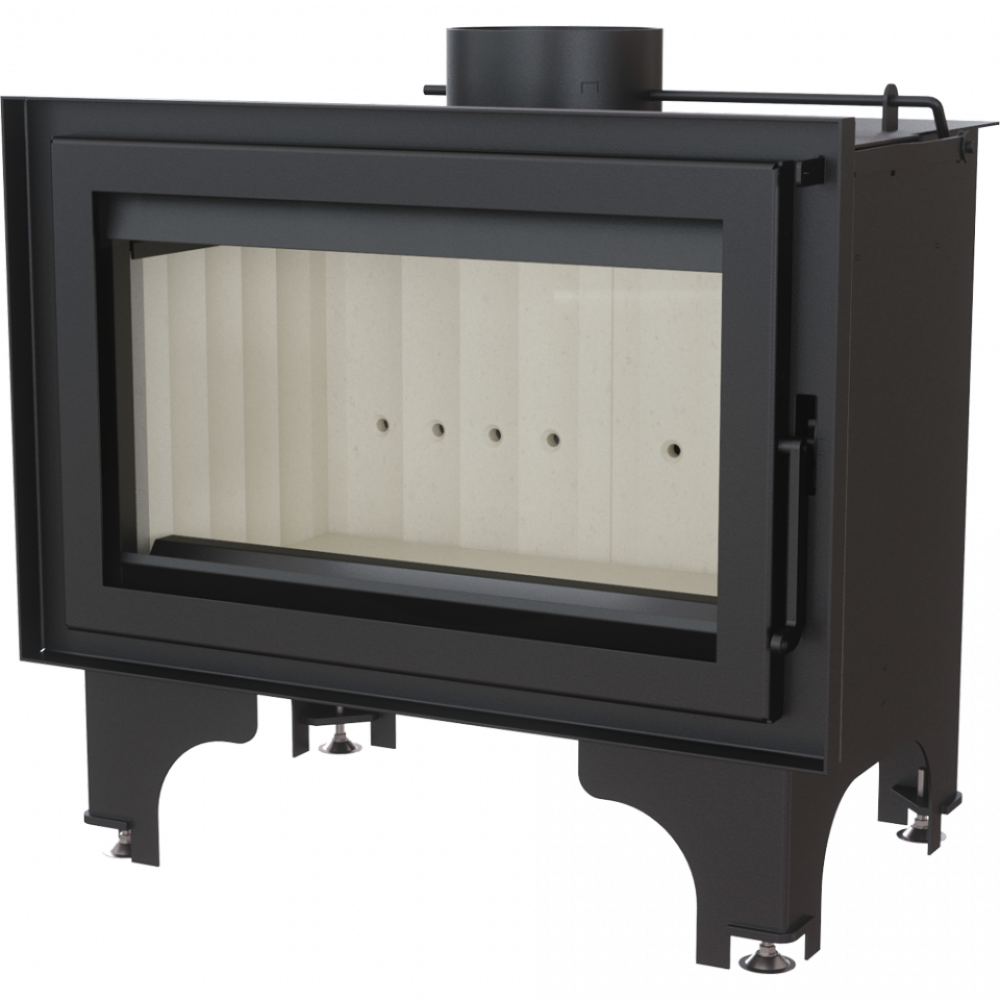 Увеличение температуры в камере сгорания способствует футеровка керамическим материалом, а большая площадь поверхности топки и высокий дымосборник отдают больше тепла в помещение. Для облегчения обслуживания предусмотрен съемный колосник и выдвижной ящик для пепла/золы.