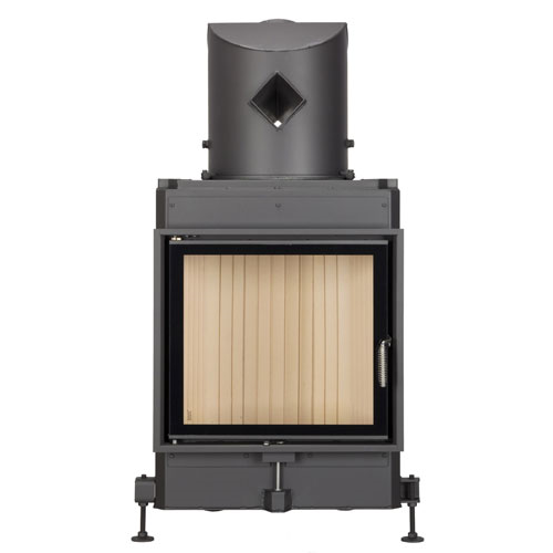 Стальная топка с прямым стеклом. Боковое открывание двери. Ширина дверки 536 мм, высота - 488 мм. Возможно подключение воздуха из-вне.