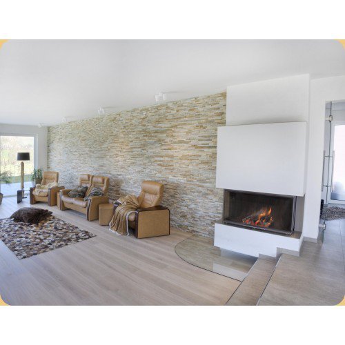 Трёхсторонняя каминная топка. Топочная камера футерована шамотом. Подъёмный механизм двери (система Easy-Lift). Ширина дверки 248/855/248 мм, высота - 492 мм. Возможно подключение воздуха из-вне.