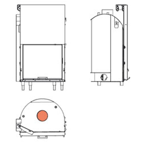 Дровяная каминная топка с водяным контуром, который полностью охватывает топку, увеличивая поверхность теплообмена. Модель оснащена расширительным баком.