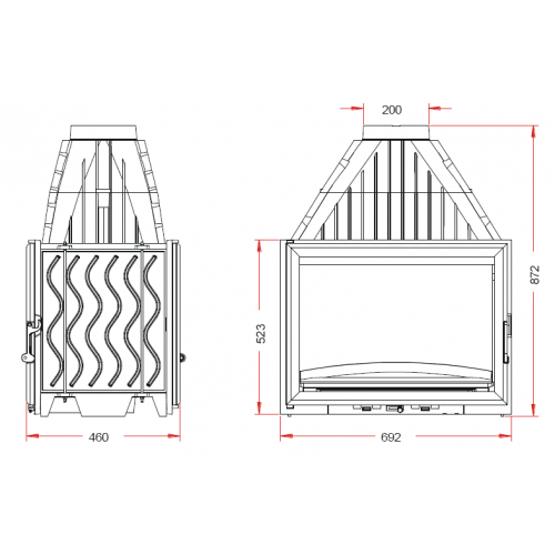 | Максимальная мощность с конвектором (30 минут горения) | 280 м2 / 840 м3 |