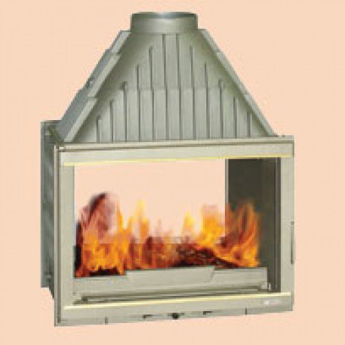Сквозное стекло, высокий дымосборник. Латунная рамка.