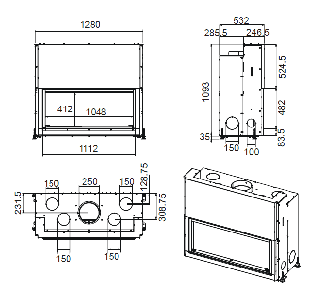 - Габаритные размеры ШxГxВ, (мм): 1280x532x1110