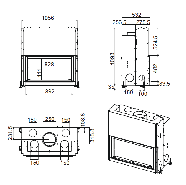 - Отсутствие нижней рамки стекла, увеличивает обзор огня.
