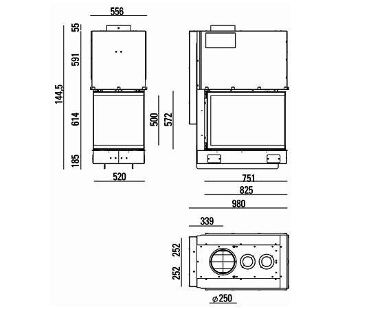 - Отсутствие нижней рамки стекла, увеличивает обзор огня.