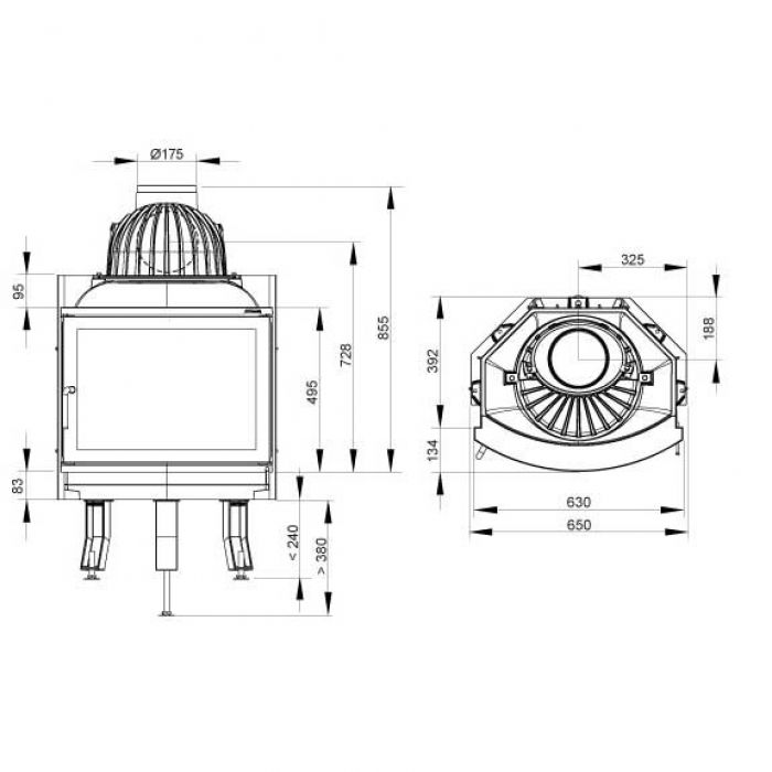 В качестве основного материала выступает листовая сталь, которая способна выдерживать высокотемпературный нагрев без физических изменений. Поверхность корпуса покрыта защитной эмалью черного цвета. Внутренняя поверхность камеры сгорания футерована огнеупорным керамическим материалом Thermotte™, который оптимизирует процесс горения и значительно облегчает чистку камеры.