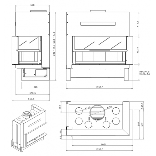 Топка с угловым стеклом. За счет правостороннего остекления увеличивается обзор огня. Стальной корпус, реверсивная огнепрочная футеровка. Удобная загрузка дров, простой уход и экономичный расход топлива. На двери установлено жаропрочное стекло, выдерживающее высокую температуру. Благодаря системе самоочистки стекла, топочное окно остается чистым и прозрачным во время работы прибора.