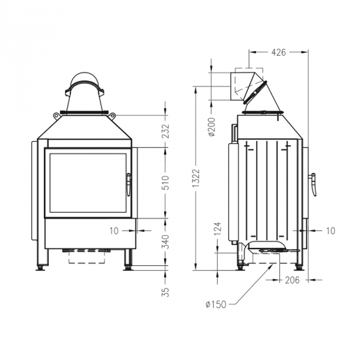 - Опциональная комплектация дополнительной задней дверцей для закладки дров из подсобного помещения.