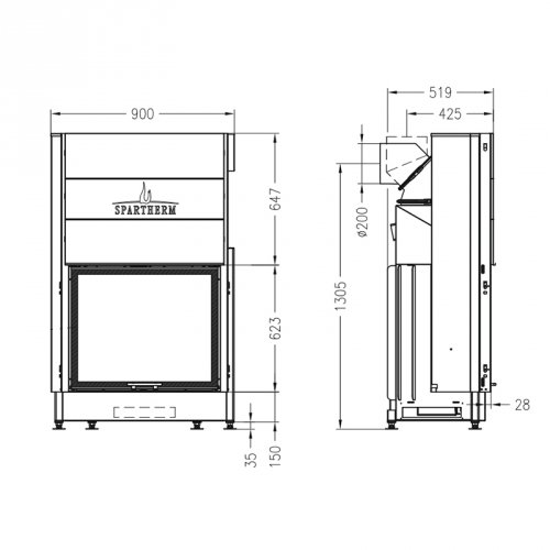 Spartherm Varia Sh 4S– топка, отличающаяся малой установочной глубиной (всего 505 мм). Мощность данной модели – 11 кВт. Одним из преимуществ дровяной топки Varia Sh является большое прямоугольное стекло, открывающее прекрасный обзор. Дверца данной топки Spartherm поднимается вверх.