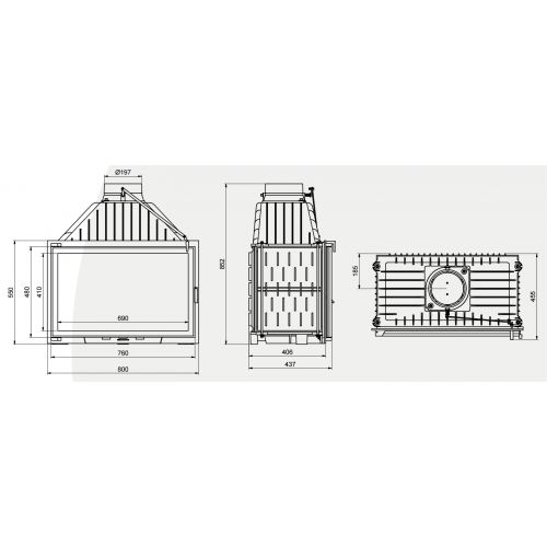 Технические характеристики:-  Эффективность 19 KWЭффективность с теплогенератором 23 KWШирина 80 cmВес 179 kgКПД 76%КПД (с теплогенератором) 82%Древесины 55 cm