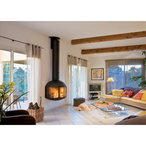 Пристенный подвесной камин от марки из Франции сможет выгодно вписаться в любой интерьер. Интересная круглая форма топки станет яркой характерной чертой любого интерьера.