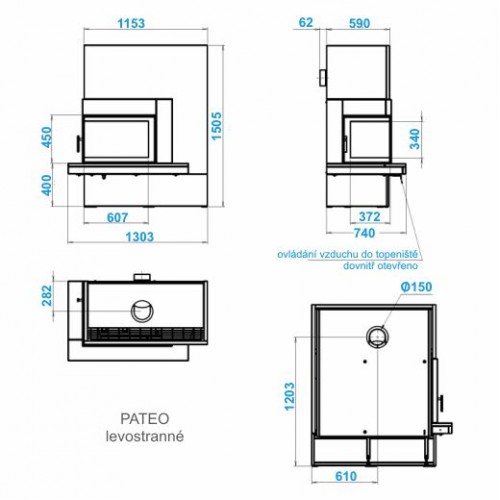 Камин изготавливается в левостороннем или правостороннем вариантах.