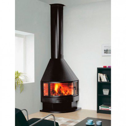 Угловой металлический камин. Дрова: 40 см.