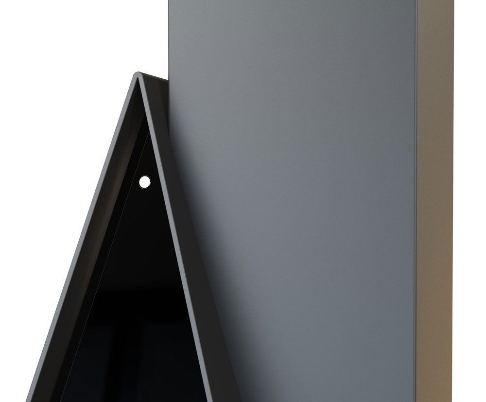 Разрабатывая эту модель, талантливые конструкторы и дизайнеры компании решили отойти от привычных наскучивших форм и разработали оригинальную конфигурацию камина в виде треугольника. Четкие пропорции, сбалансированные линии прекрасно сочетаются с черным стильным цветом боковых частей облицовки и красивым цветовым исполнением фронтальной части.