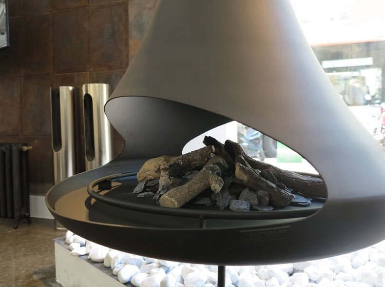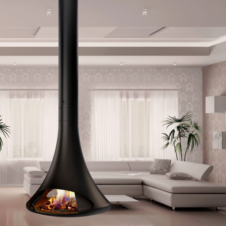 Центральный открытый подвесной двусторонний камин, без поворотного механизма. Цвет - черный.