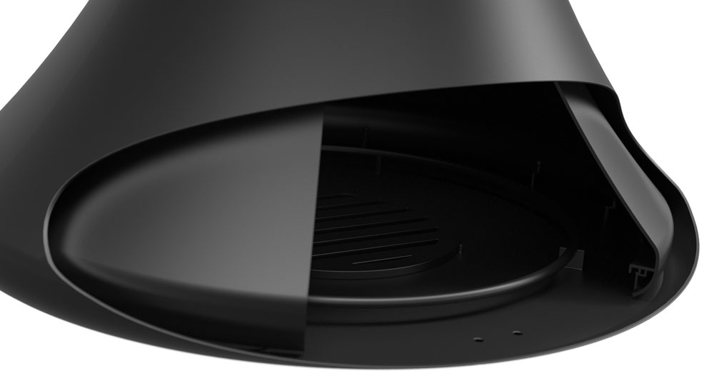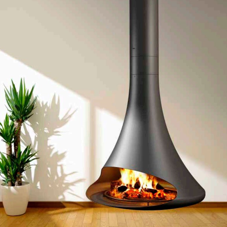 Центральный односторонний подвесной камин, без поворотного механизма. Цвет - черный.