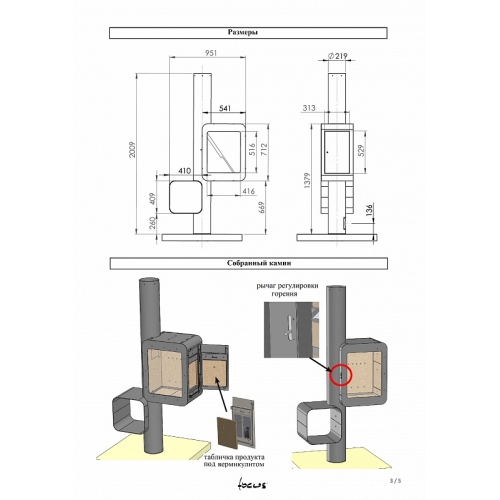 - - Съемный( не требующий использования инструментов ) дефлектор в выходе дымохода ( для удобной чистки дымохода)