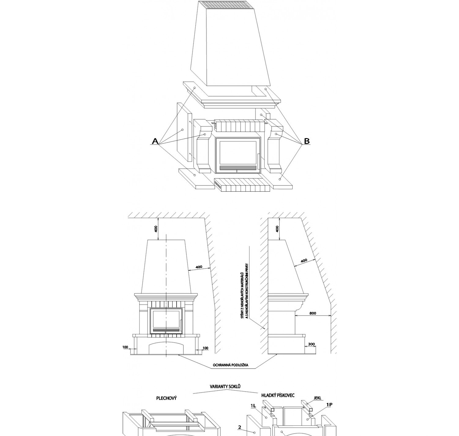 Представленный чешский камин ABX Preston Klasik (белый цоколь) с облицовкой из песчаника оборудован закрытой топкой.