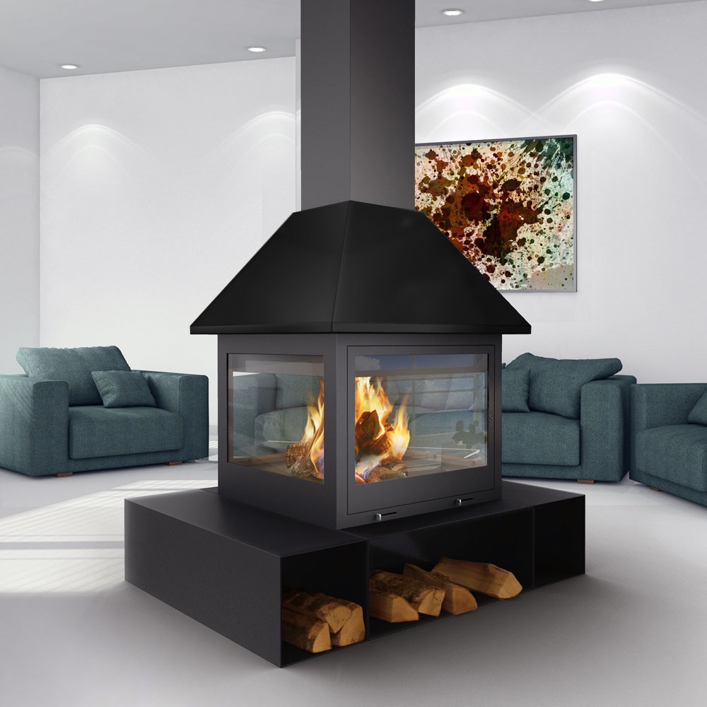 Специальный камин для больших помещений. Двойной кожух, различные варианты основания и система регулировки горения делают его одним из лучших. Цвет - черный.