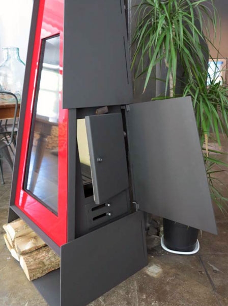 Пристенный треугольный дровяной камин, черный, RAL. С функцией двойного дожига.