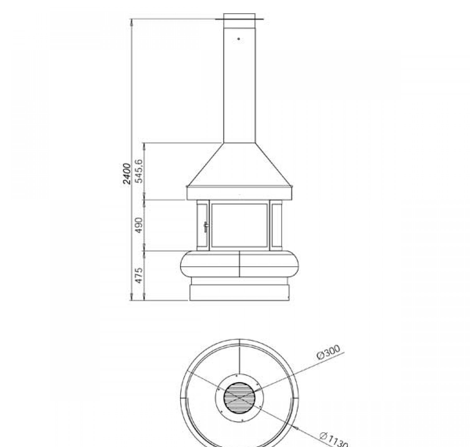 Камин Zeus, центр., со стеклом, черн., h2,4м (Traforart)